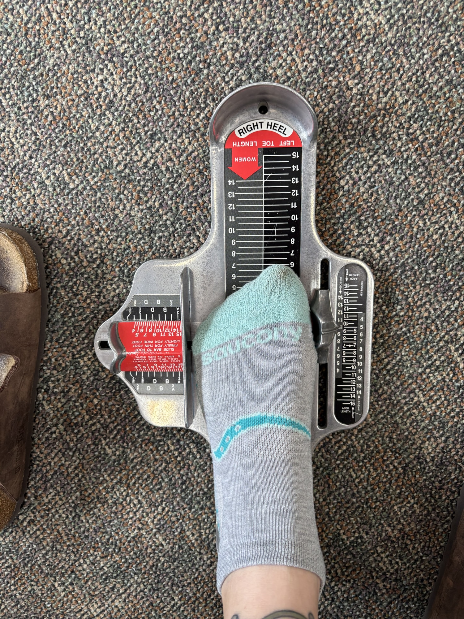 Now, I have been wearing a size 7.5 normal shoe, and an 8 in running shoes. It’s always good to go up half a size with running shoes because your feet swell. I ran for years in a 7.5 and it caused so many blisters. However, at this trip to the store they sized my feet and it turns out I am now an 8, but only the right foot. The left foot is a 6.5. I took pictures because I couldn’t believe this fact, but it’s true. I went home with a fresh pair of size 8.5 running shoes.
