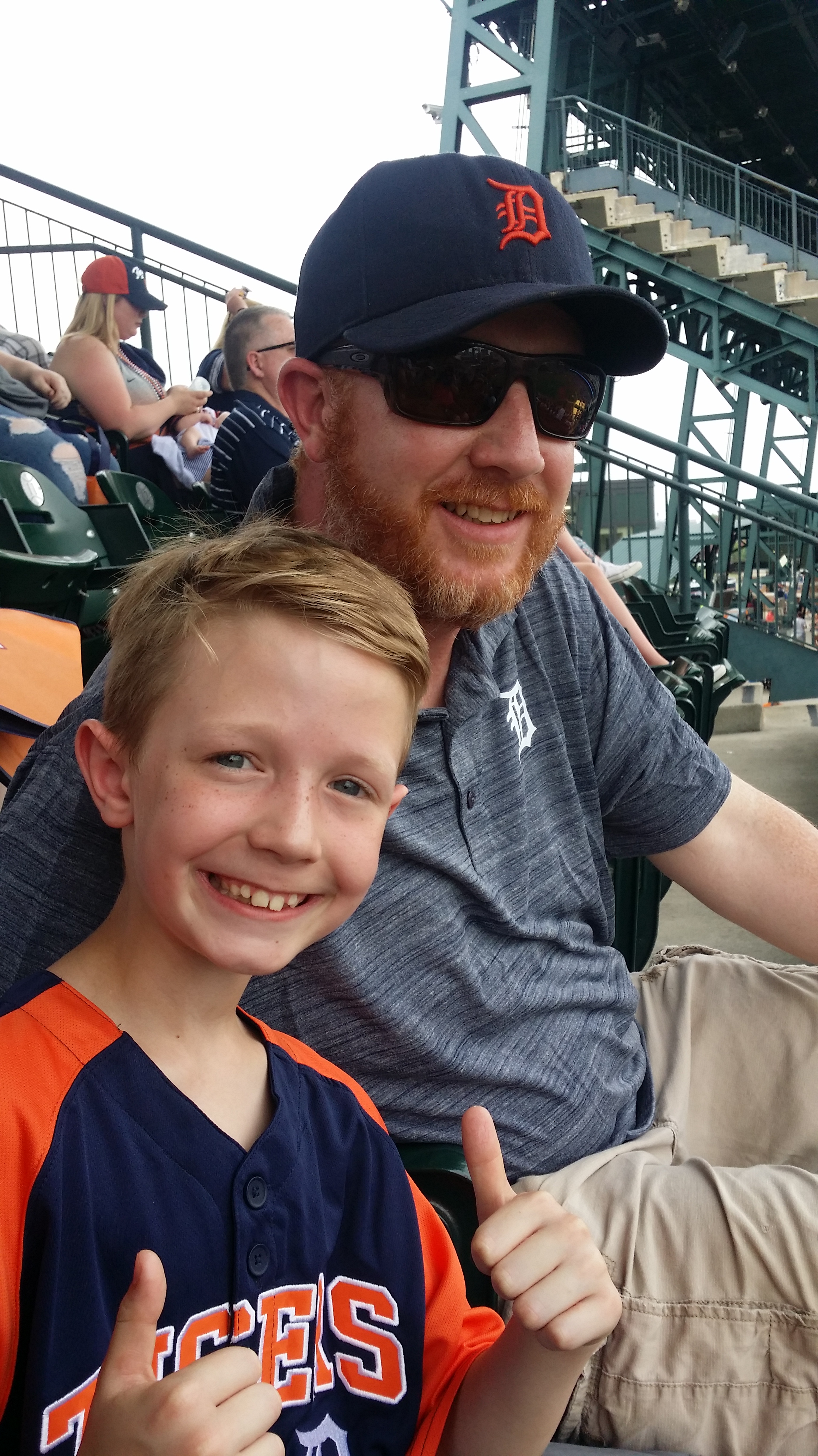 We went to a Tigers game last night! We love the Detroit Tigers around here. Baseball is really the only sport I am able to follow. Simple enough rules, and it moves slow enough that I can keep up. My boys love it too, of course, so it’s fun to share in the excitement of a good game. My daughter actually kind of hates baseball, and most other sports, because she says it’s boring. But despite her lack of enthusiasm, she tried her very hardest to have a good time. And as you can see from the photo, she managed to put on a smile.