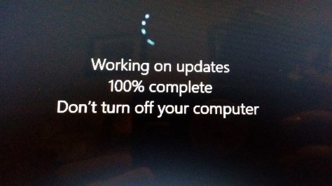 I came home from bible study and was going to scan my study notes, because they are difficult for me to read and I can enlarge them and view them in high contrast on the computer. I was met with this. 100% means it is done, but clearly it’s not because that little circle is still swirling. And these are the times I’m reminded that even I can be an impatient person.