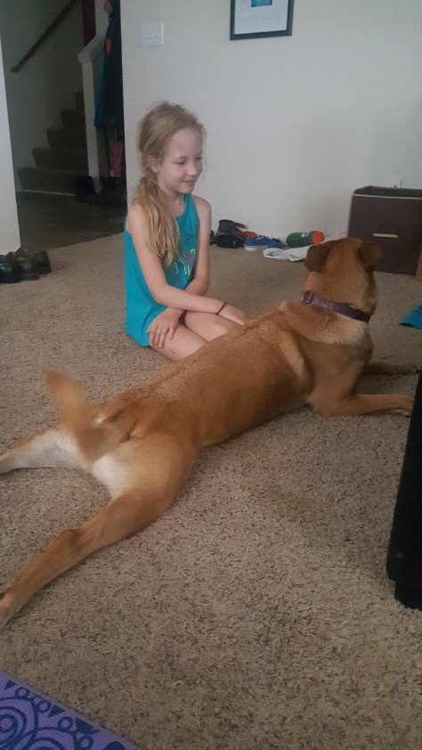 We were doing our exercises and Piper wanted to join in. I think this is her version of a plank. Not too shabby for a first try!