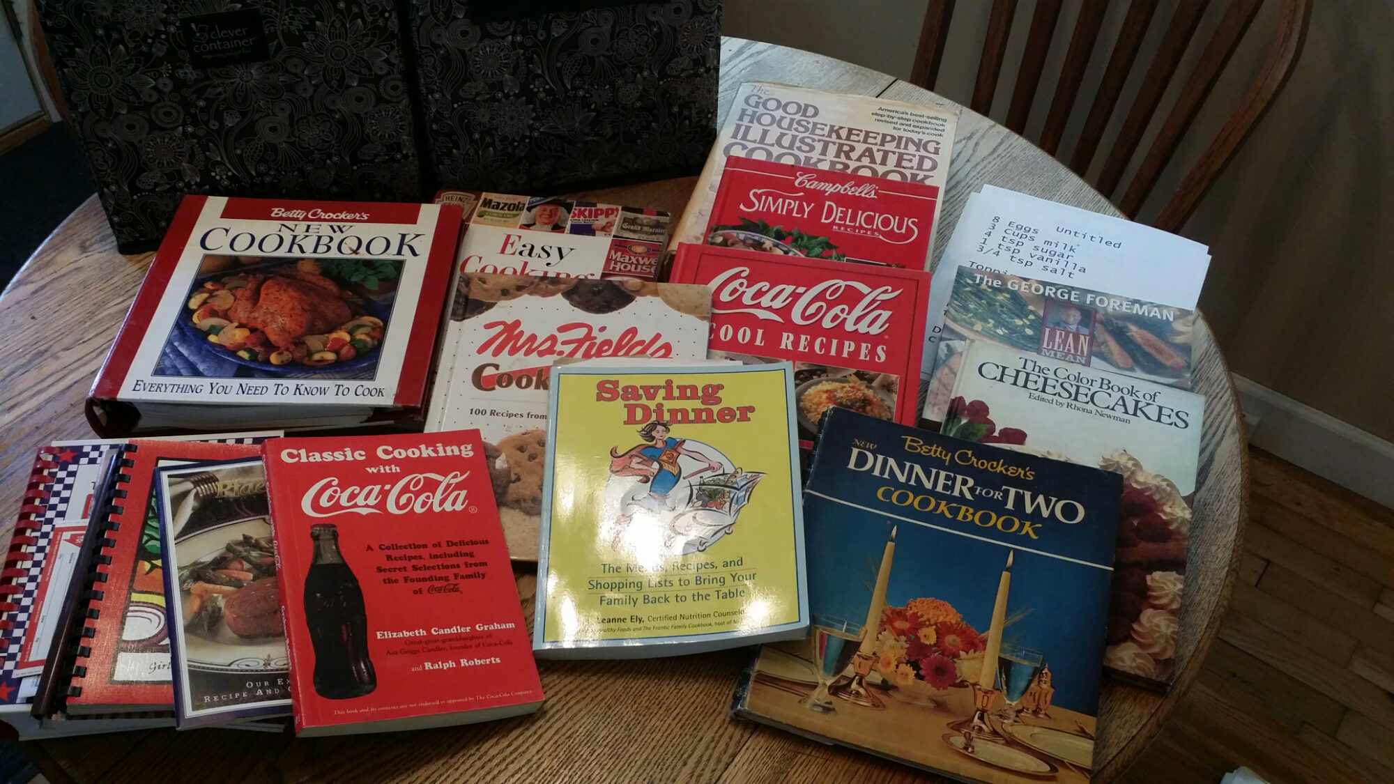 Declutter project #1 – Cookbooks!! This should be an easy one. I barely used cookbooks when I could see well, and with the loss of vision I have dropped off the cookbook wagon. There is a wagon, isn’t there?