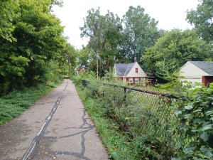 I took the above photo just before I decided to call it quits. I was walking, still in pain, and so happy to see that red house because it meant the public park I had been anxious to reach was just on the other side. I don’t know if you can see the red house, but it’s to the left of the two white houses. The park on the other side is the hub of our city’s local trails and I was really looking forward to running around the lake there.