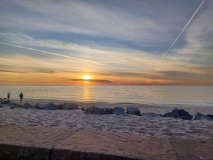 To end the race experience we walked over to the beach area and took our socks and shoes off. The water was blocked off by a slight stone wall, so we didn’t put our feet in the water, but putting our feet in the sand was cooling enough. It felt amazing to sit and rest there. Allison didn’t know this about me, but I used to have a strong aversion to sand. I couldn’t stand touching it. Up until a trip with my family to the Michigan’s Upper Peninsula in 2020. We walked onto the beach so we could all dip our toes into Lake Superior and I found myself saying, “oh, this feels nice”. Which was such an odd thing for me to say, I surprised myself! Something about that trip I guess flipped a switch and now it doesn’t bother me. Sand, sugar, flour, it’s all okay for me to touch. It doesn’t make me cringe anymore, and I’m loving that change. But I digress…
