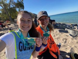 The Sleeping Bear race was four hours away, so I booked a motel in a nearby town for myself and Allison, my guide runner (all the lodging in the area was filling up fast!). We had to drive to Traverse City (also nearby) to pick up our race packets so while we were there I introduced Allison to one of our favorite T.C. restaurants, Slabtown Burgers. After dinner, we made a valiant effort to find ice cream for dessert, but were unsuccessful. All the ice cream shops were closed for the season!