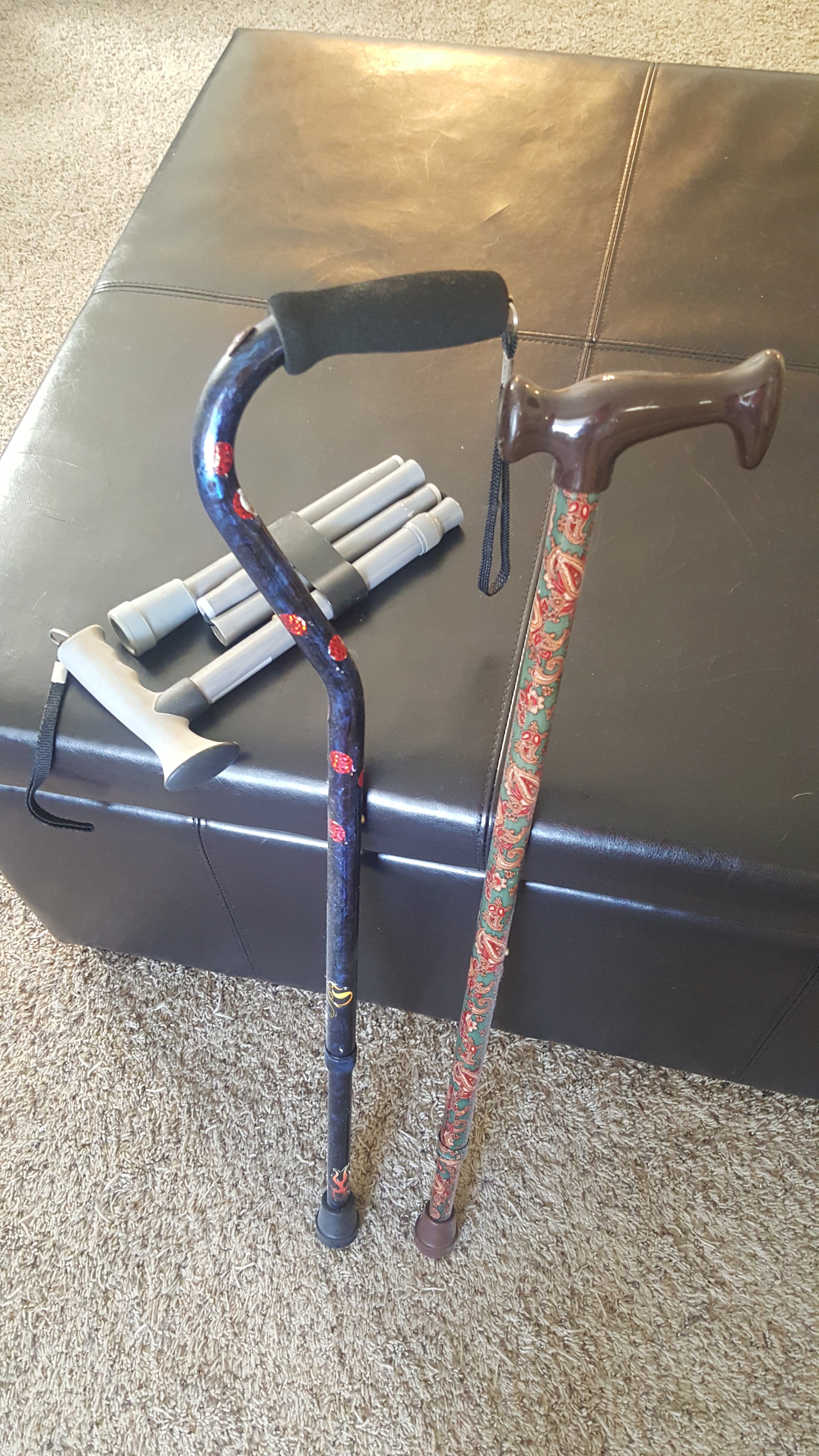 I don’t know about getting rid of the walking aids. There is still a quiet voice back there whispering “what if?” and they do hold memories for me. However, they are not very joyful memories, so Marie Kondo would encourage me to let them go. Maybe I’ll just keep the paisley cane, because it’s just so pretty. It does spark a teensy bit of joy. 😁